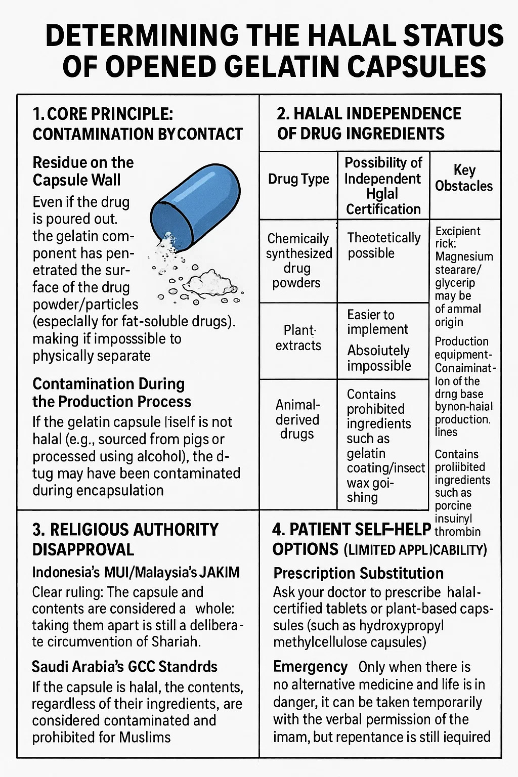 Индонезия MUI/MALAYSIA's JAKIM: ЧЕРЕЗОВЕРНОЕ ОБРАЗОВАНИЕ: Капсула и содержимое считаются целыми; Развлечение их по -прежнему является преднамеренным обходом шариата.